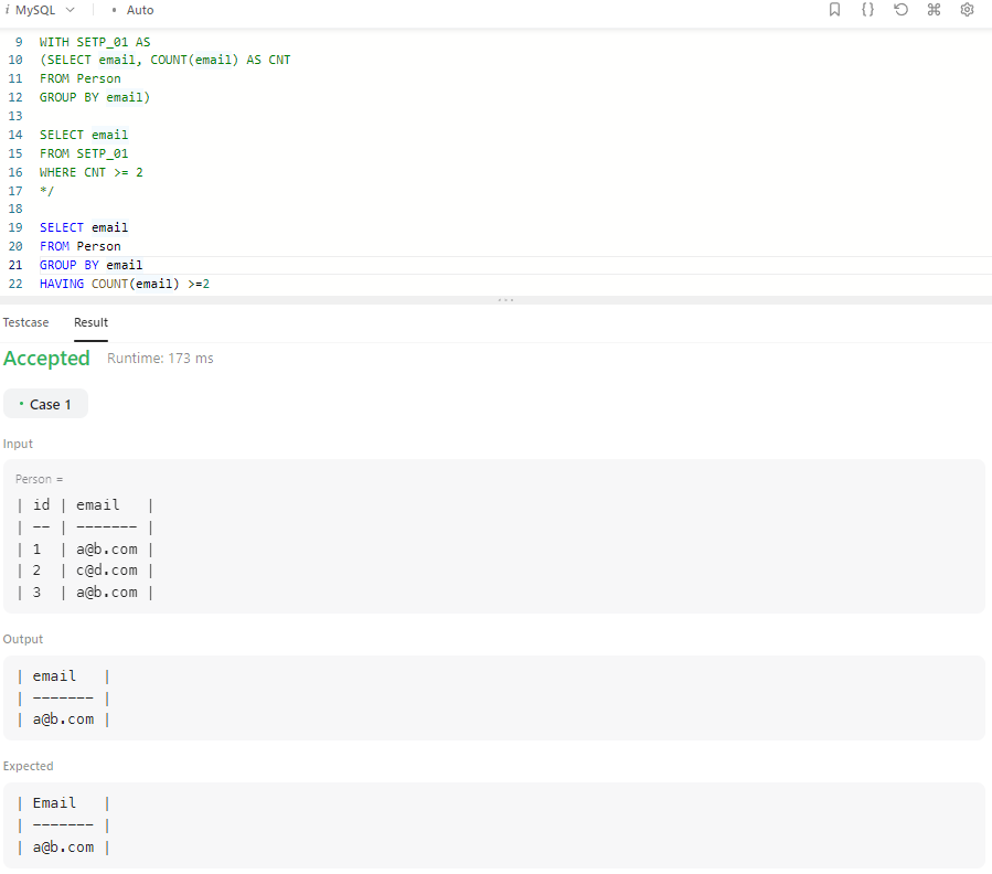 [LeetCode/MYSQL] - 182. Duplicate Emails 본문